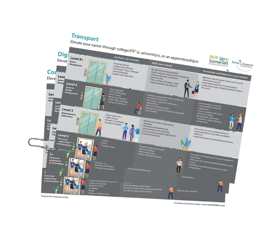 The Skills Elevator not only provides details about the qualifications needed for each job level but also highlights the necessary skills and behaviours that are important for success in that role.